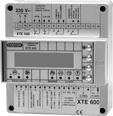 One configurable input: remote control or temperature flue gases Pt 1 kΩ and On-Off